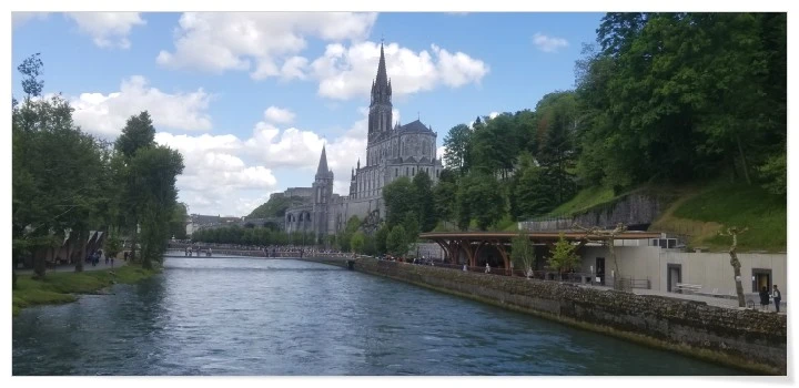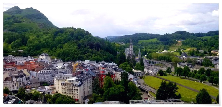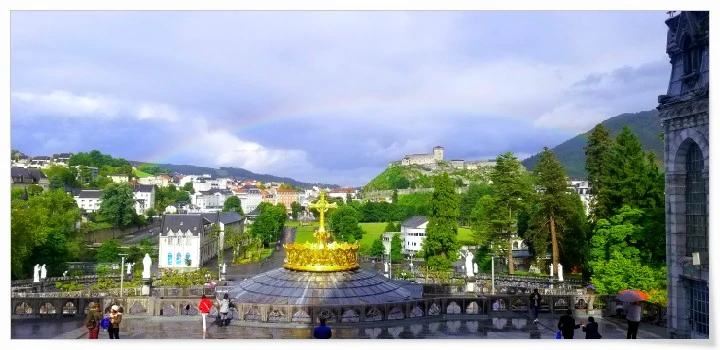 루르드(Lourdes)는 프랑스 남서부 피레네산맥 북쪽 해발 420m 산기슭에 위치한 작은 마을입니다. 성모 마리아가 열네 살 소녀 베르나데타(Bernadette Soubirous)에게 발현한 동굴 성지 부근 일대를 '루르드의 성모 순례지'라고 부르는데요. 가톨릭 신자들이 성지순례를 오기도 하지만, 중환자나 불치병으로 고통받는 이들이 마지막 희망을 걸고 찾아오는 기적의 성수가 샘솟는 곳이랍니다. 신비스러운 기적을 기대해서라기보다, 딸내미가 세례명을 베르나데다로 정한 근원지라서 찾게 된 루르드이구요. 카미노 걸으며 지친 발걸음도 쉴 겸 순례길 마무리로 찾은 루르드입니다.