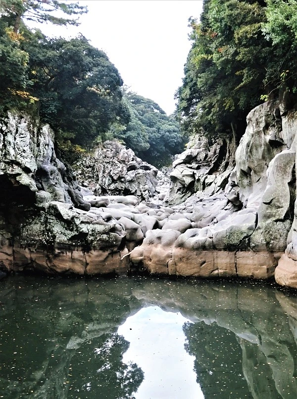 용암으로 이루어진 기암괴석과 깊은 수심, 울창한 숲으로 이루어진 하천 벼랑이 절경인 쇠소깍입니다.