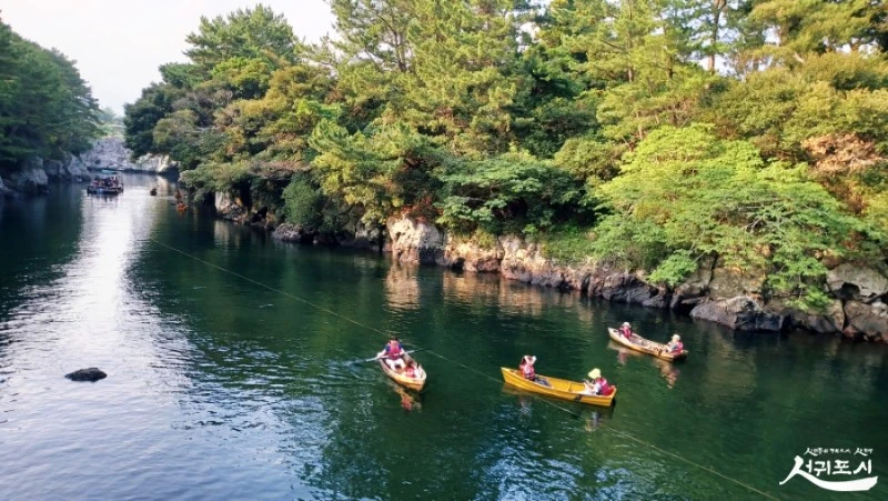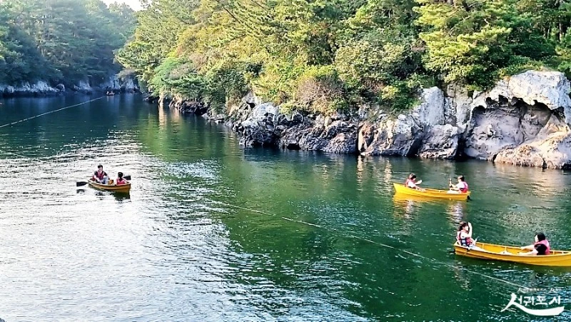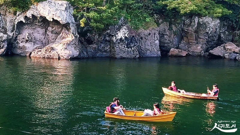 바다와 민물이 만나는 효돈천 하류 쇠소깍은 명승 제78호이며 물색 신비롭기로 유명하지요.