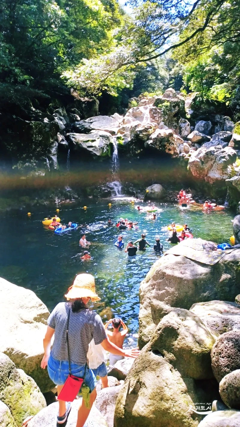 깊은 산간이라 수온 꽤 낮아 이빨 맞부딪힐 판일 텐데 수영 중이거나 튜브 타는 물놀이객은 꽤나 즐거워 보였어요.
