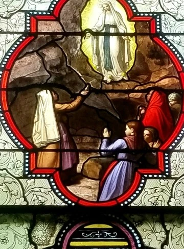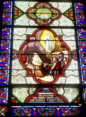 열여덟 차례나 마사비엘 동굴에서 성모님이 발현한 내용은 루르드 대성당 안에 스테인드글라스로 아래와 같이 상세히 표현되어 있습니다.