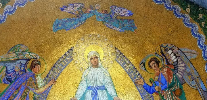 그 부인(Notre Dame de Lourdes)은 후광에 싸인 채 노란 장미 위에서 베르나데트에게 발현했는데요.