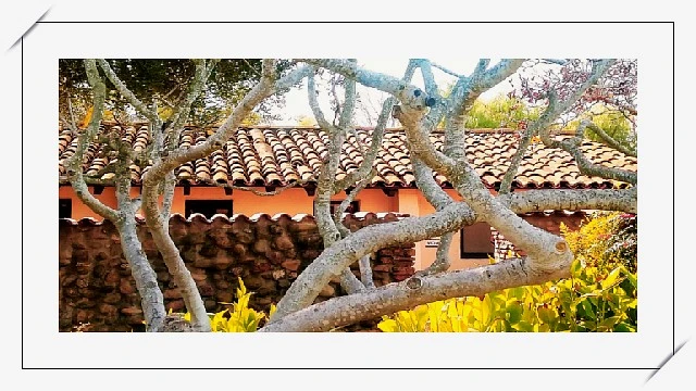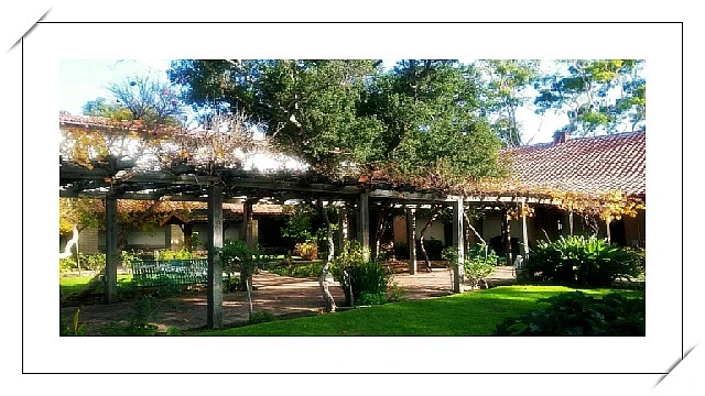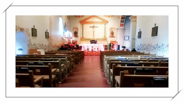 포도 시렁에 포도알 바짝 말라가는 황량하기만 한 후원을 가로질러 성당으로 들어갔다. 지금도 미사가 봉헌되는 아담한 성당이었다. 실내는 자연채광으로 밝은 편이라 벽감 둘레에 그려진 자잘한 꽃무늬가 살아있는 듯 싱싱했다. 그만큼 사실적이기도 하지만 오롯한 성심이 담겨있는 정교한 그림이었다. 알타 캘리포니아 소재 대부분 성당이 그러하듯 멕시코 풍 제단은 장엄미나 경건함 대신 한국 무속신앙의 신당처럼 울긋불긋해 이질감이 느껴졌다. 절에 다니면서 탱화나 단청에 익숙해 있고 천지만물을 상징하는 오방색도 좋아하지만, 붉은색 계열의 샤머니즘적 색채엔 왠지 거부감부터 들었다. 앞뒤로 사진 두어 장 찍은 다음 성호 긋고 얼른 나왔다.