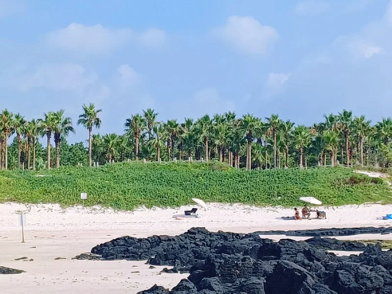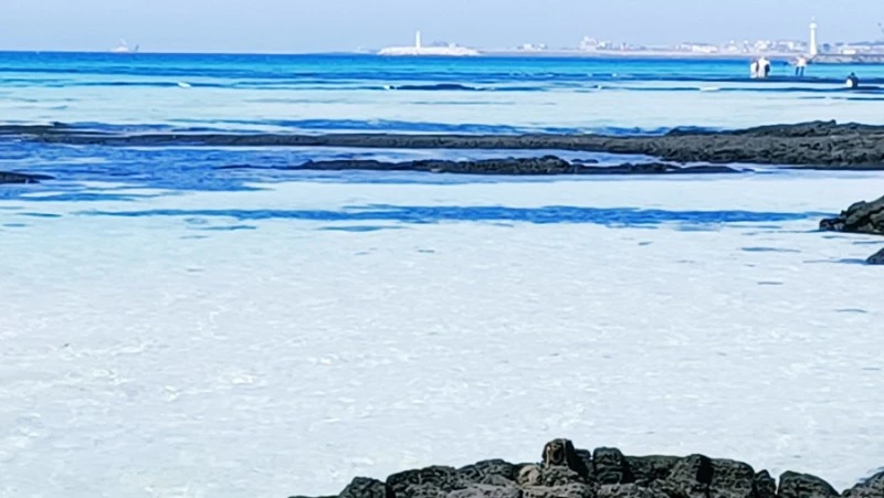 부드럽고 고운 흰 모래톱과 새까만 현무암이 빚어내는 흑백의 하모니, 그 격조있는 대비.