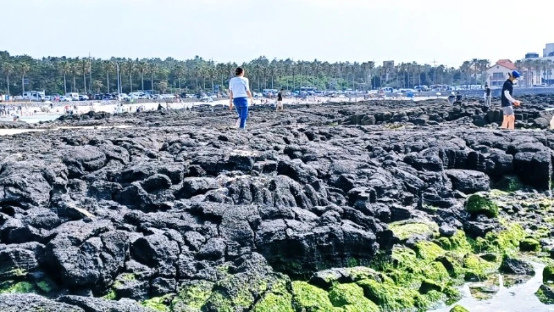 흘러내린 마그마가 뒤엉켜 굳으며 갈라 터지고 쪼개지고 금 간 상처투성이지만 밟아도 끄떡없다.