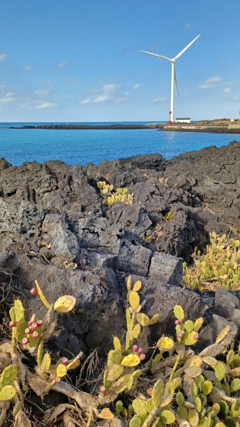 오늘도 풍력발전기 시원하게 돌아가는 이곳. 바닷가 선인장 마을 월령리.