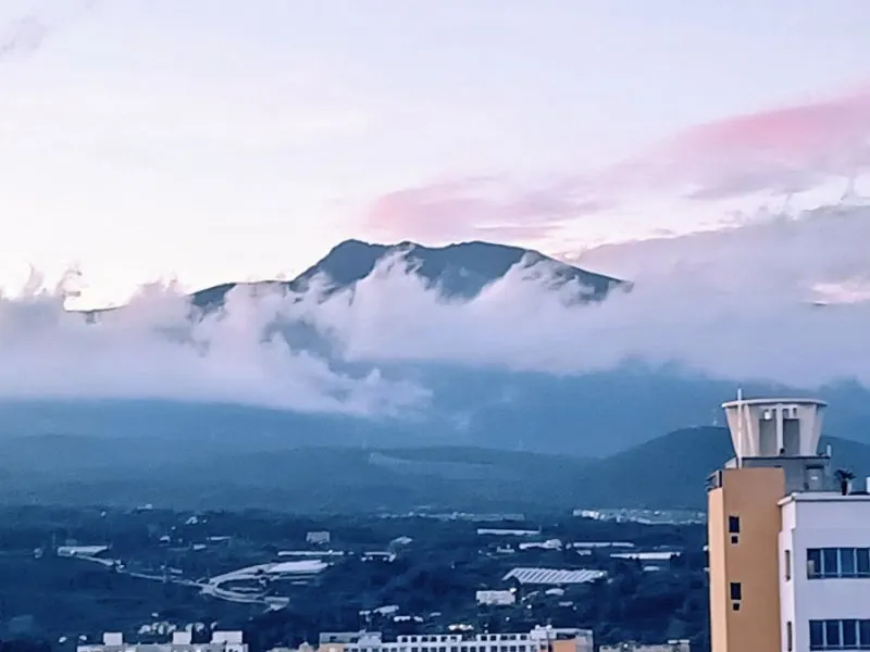 비닐 봉다리 두엇 챙겨 들고 돌아오다 보니 백록담 어름을 흘러가는 구름에 노을빛 살짝 어려있었다.