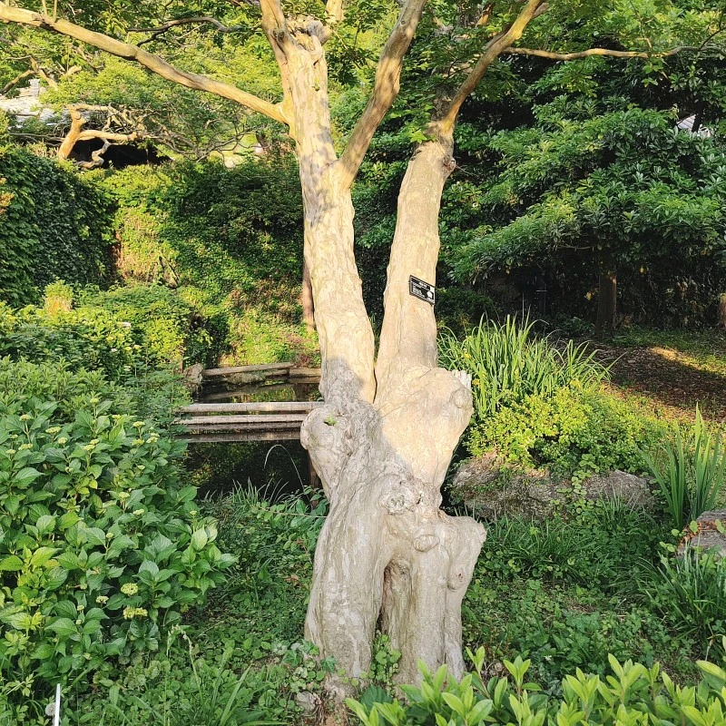 정원, 죽순 한창 돋아나는 희귀 구갑죽과 황금죽 자색죽이 쑥쑥 자라고 연리목으로 얽힌 배롱나무도 눈여겨볼 만하다.
