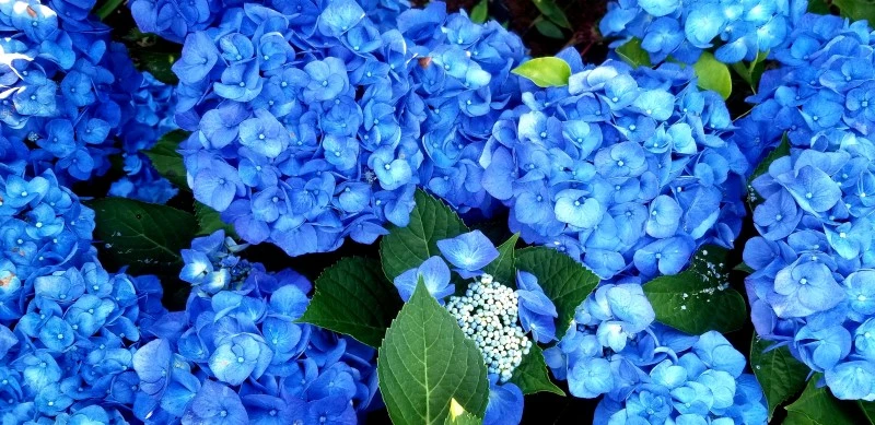 이처럼 희다고 계속 하얀 것도 아니고 파랑이라고 다 파란색만도 아니다. 순백에 핑크 연분홍 자주색 연노랑 연두색 청록 연보라 남보라 진보라 …. 미묘한 파스텔톤 배합에다 짙고 옅은 농담이 한 송이에서 조화를 부린다. 흙과 물이 어찌 저리도 신비스러운 빛깔을 빚어낼까. 한 그루에서도 뿌리의 길이나 수분 흡수량과 시간의 흐름에 따라 다른 색깔로 변해간다. 그래선지 색색이 다른 꽃말은 냉정, 냉담, 무정, 변덕, 변심, 진심이다. 진심이었다가 변덕이 생기면 변심도 예사롭다. 도무지 종잡을 수 없는 요즘 세태와 시류를 닮은 꽃 같기도 하다.