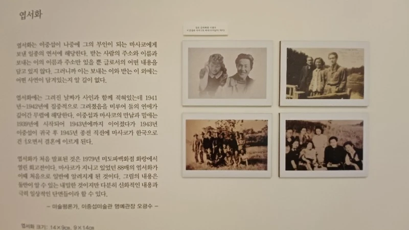 반면 엽서화는 일본 유학시절에 만나 후에 아내가 되는 마사코에게 보낸 내밀한 연서로 예술가의 뜨거움이 고스란히 담겼다.