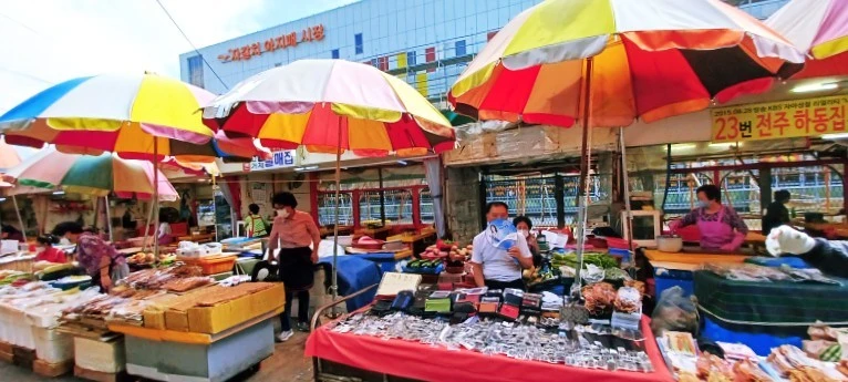 우측으로 돌아가자 바로 코앞이 북적거리는 시장골목이었다.