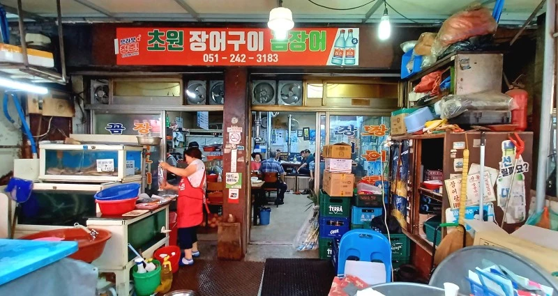 여태껏 부산 명물인 자갈치시장만 알았지 근처에 대규모 꼼장어 골목이 있다는 건 첨 알았다.