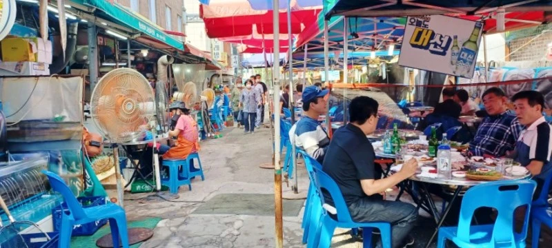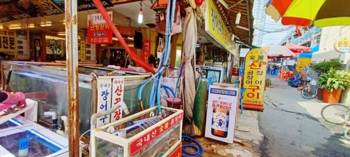 충무동 해안 시장, 미로처럼 나있는 골목에 장엇집이 촘촘 포진하고 있었다.