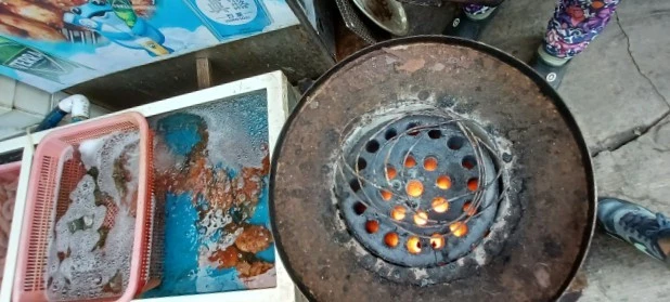 연탄 화덕에 올려진 장어가 익어가며 푸르스름한 연기를 피워 올린다.