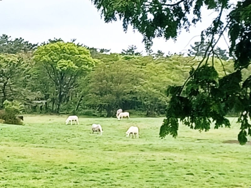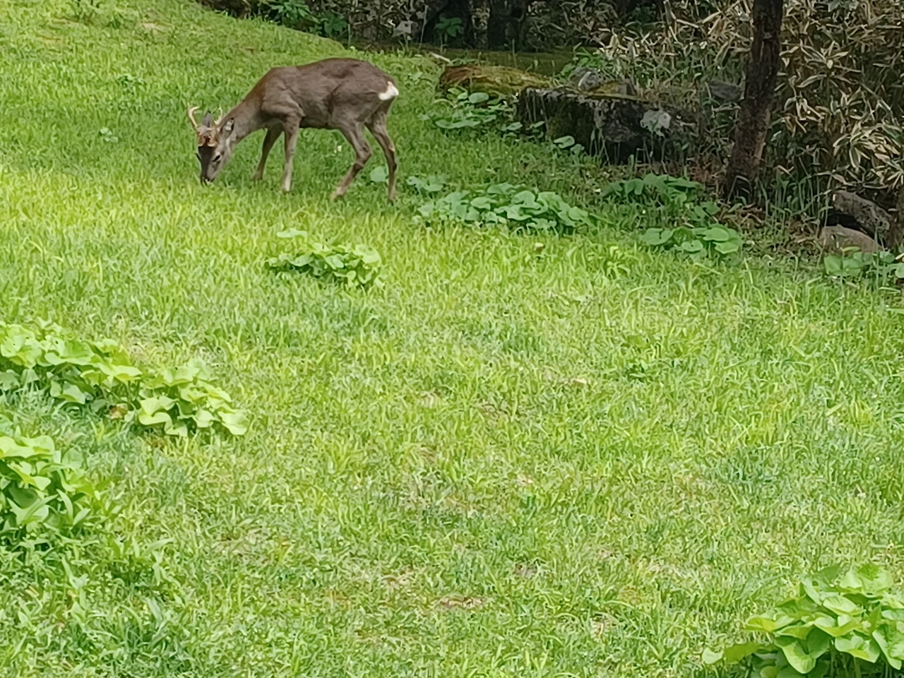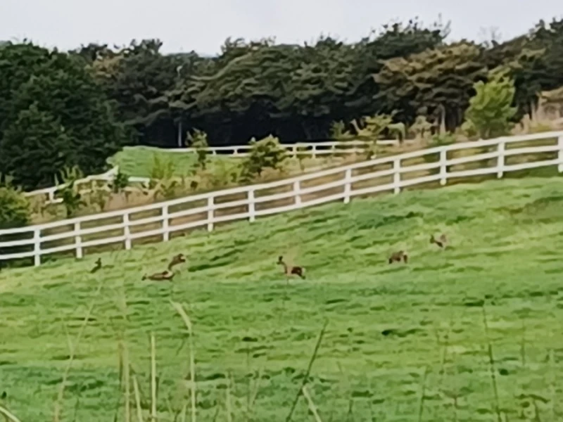 숲과 바로 이어진 언덕에서 말이 아닌 무언가가 움직이는 게 포착돼 자세히 보니 사슴 무리였다.