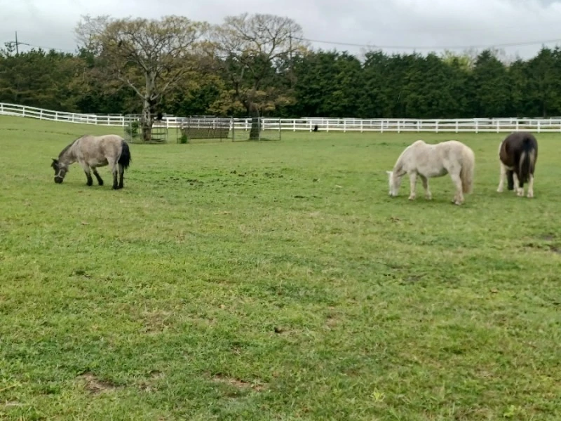 목장 너른 초지에 떠듬떠듬 몇 마리 말은 세찬 비 전혀 아랑곳 않은 채 풀을 뜯느라 고개 숙이고 있었다.