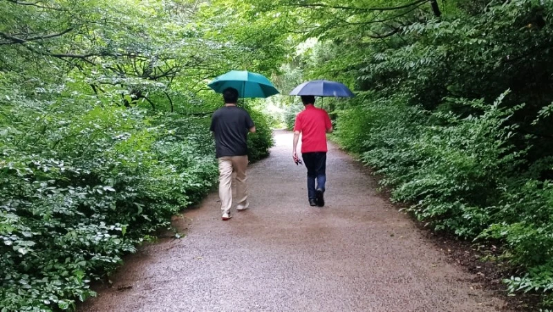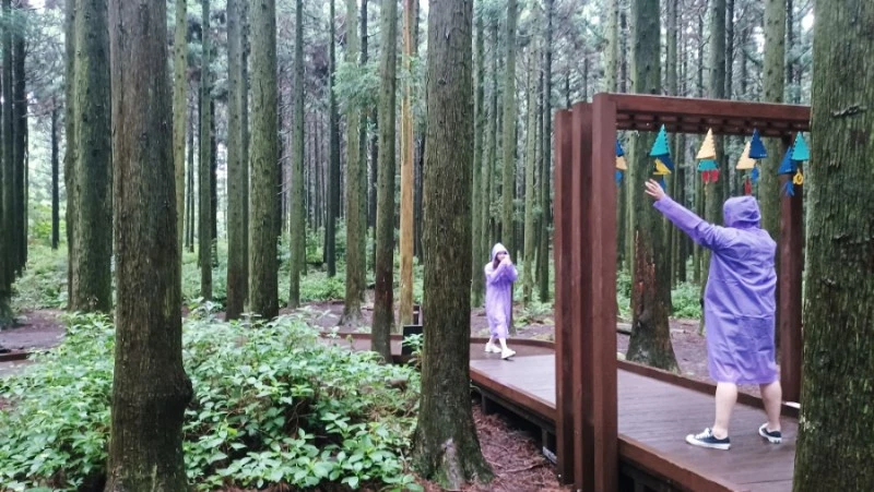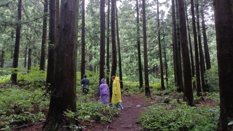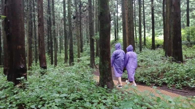 빗줄기로 맑게 세례 받은 숲의 청량감을 오롯이 만끽할 수 있어서 이리라.