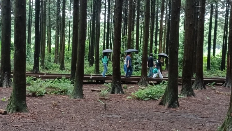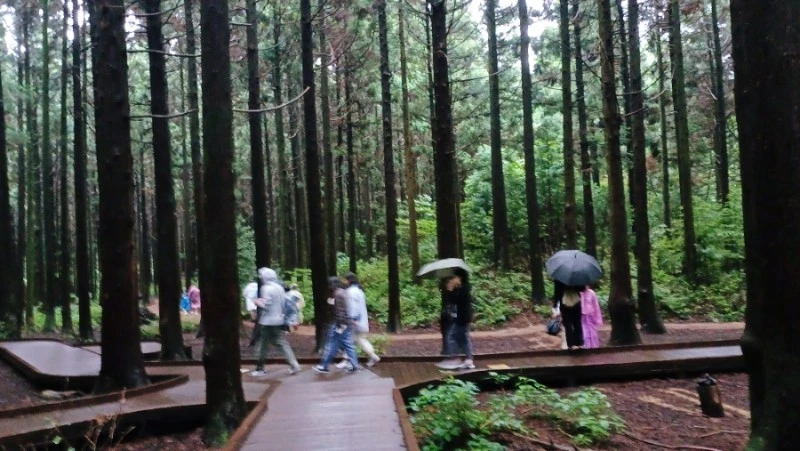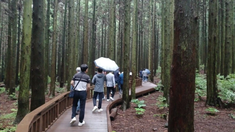 인간 심리는 엇비슷한 듯 비 오는 날씨임에도 의외로 많은 이들이 찾아와 사려니 숲길을 산책하고 있었다.