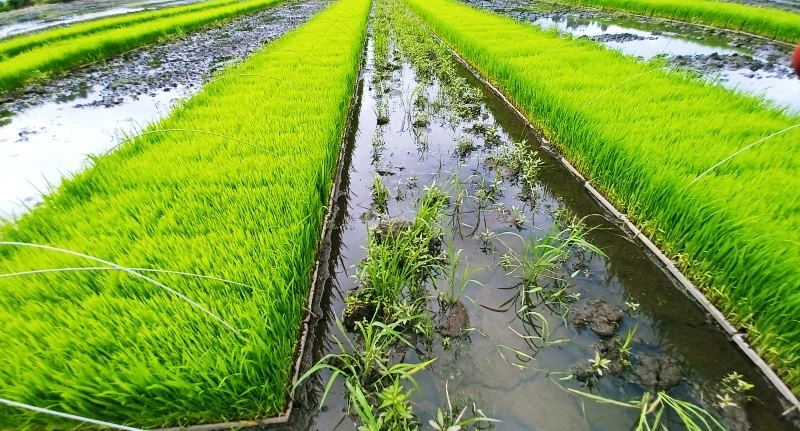 한 열흘쯤 물에 담가 싹 틔운 볍씨를 뿌려 모를 알맞게 키워낸 못자리판이며 직사각형의 모판이며 요모조모 사진에 담았다.