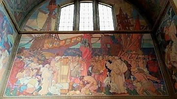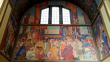 Dean Cornwell이 캘리포니아의 역사를 그려 넣은 원형홀의 사방 벽화는 5년에 걸쳐 제작되었다고.