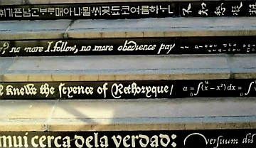 복판길 좌우 층계에 라틴어, 프랑스어, 중국어, 아랍어, 히브리어, 숫자, 음표 등 스무 개가 넘는 언어와 기호 체계를 새긴 계단도 눈여겨볼 만하다.