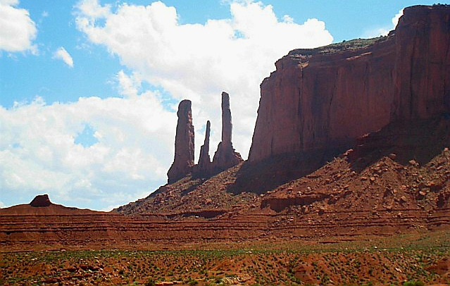 모뉴먼트 밸리 전체를 아우르는 아티스트 포인트로 가면서 만난 나눔의 성지(Spearhead Mesa)와 비의 신성지(Rain God Mesa), 천둥 신성지(Thunderbird Mesa) 등등.