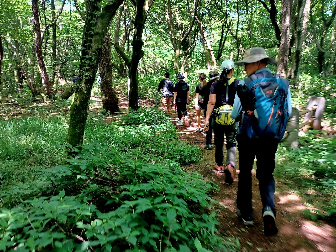 스무 명의 탐방객을 안내하는 자연해설사와 함께 우선 간단한 스트레칭으로 신체를 풀어줬다.