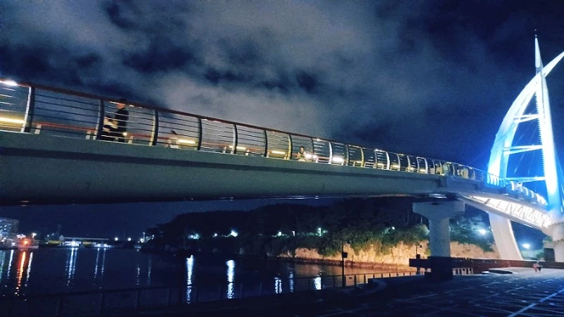 다리 위에 올라서자 멀리 강정 방파제 윤곽이 떠올랐다.