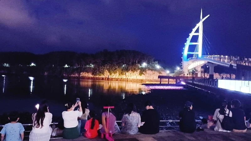 월요일 제외하고 매일 밤 새연교에 오면 서귀포 야경 감상과 함께 음악분수쇼를 즐길 수 있다.