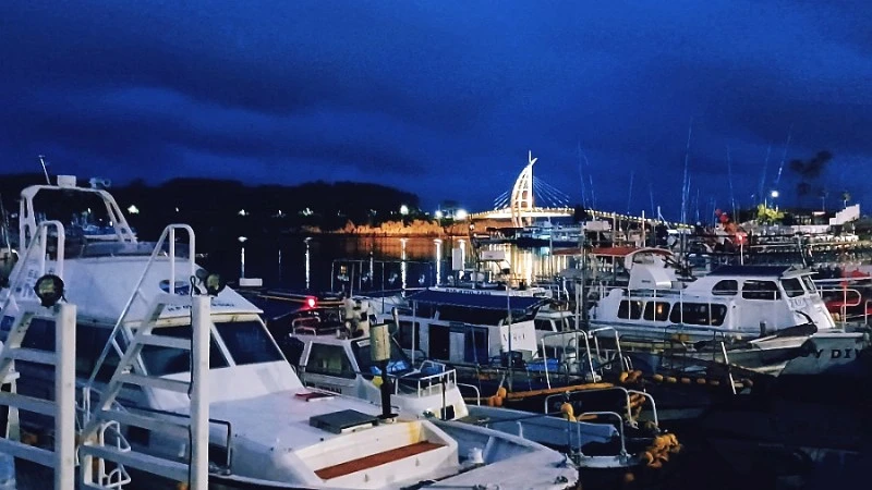 서귀포의 밤은 그렇게 새연교 명멸하는 불빛 배경으로 더욱 멋스럽게