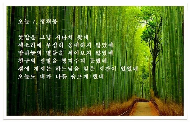 도처에 무수히 숨어있는 글의 소재들이 눈짓을 보낸다. 드러나지 않았을 뿐 무궁무진한 재료들. 매일 색다른 감동 없이 마주한 사람들과 자연 그리고 도시가 어느 날 뜻밖의 느낌으로 다가설 적이 있다. 또한 별스럽지 않은 일상사에서 참신한 글감을 만나기로 한다. 평범 속에 묻혀 아무도 발견하지 못한 것을 내가 거두어 주는 기꺼움을 위하여 나는 즐겨 창가에 서는지도 모른다. <1992, 제물포문학 청탁원고>