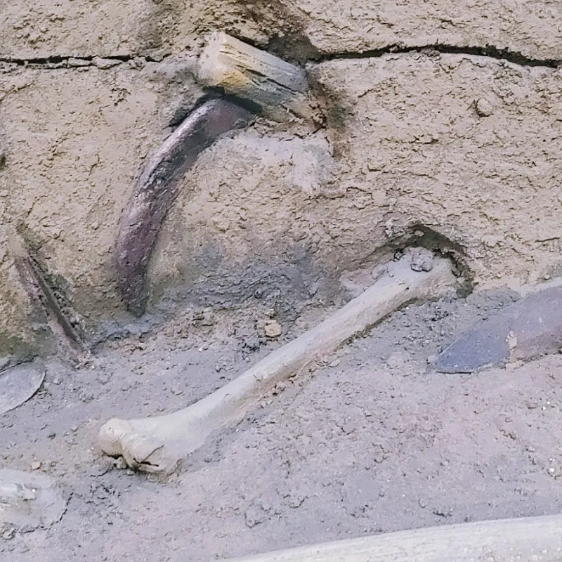 참혹한 비극의 현장, 그 유물과 유골이 비교적 온전한 형태로 발굴될 수 있었던 것은 해자라는 환경이 습지였기에 가능했다.