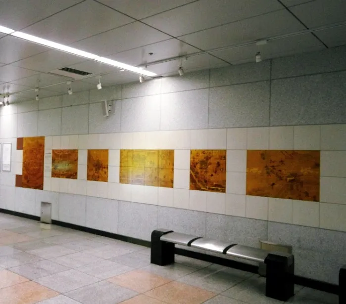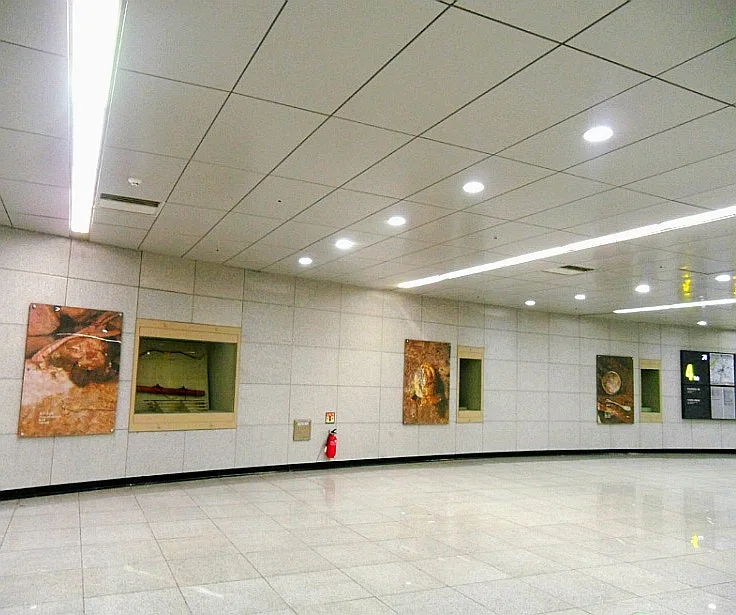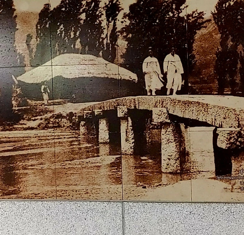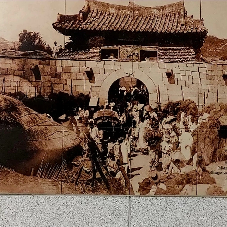 문이 닫힌 박물관 관람 대신 승강장 내부 벽화와 대합실 벽면에 원형을 옮긴 해자 단면 등을 사진에 담아왔다.