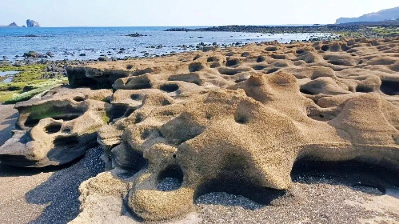 하모리층 암석지대를 살펴보면 아주 특별한 형태의 구멍들이 다수 눈에 뜨인다.