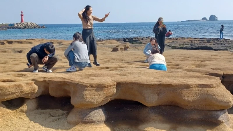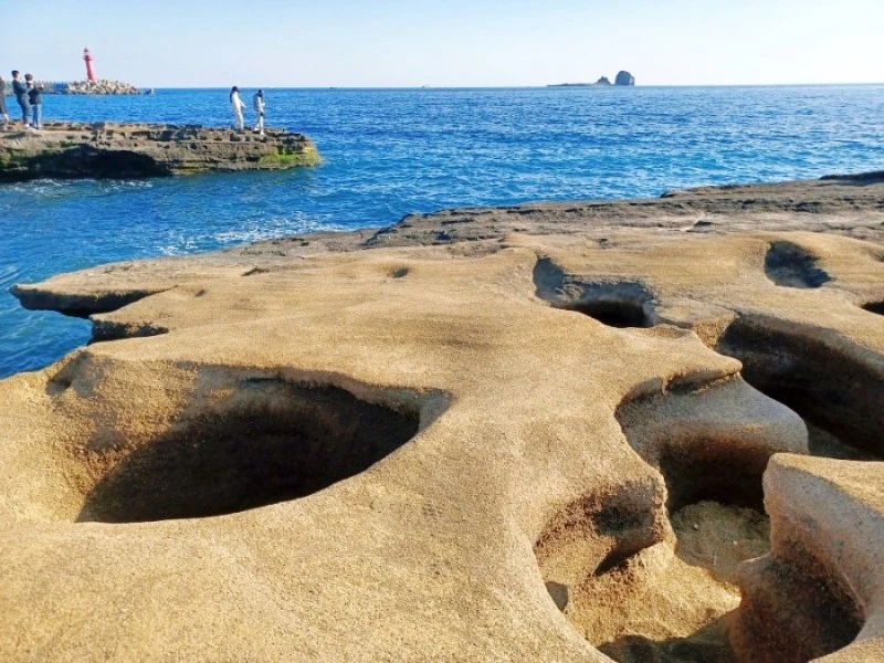 그동안 형성된 지 수천 년 지나며 파도와 바람에 깎인 하모리층은 독특할 정도로 기기묘묘하다.
