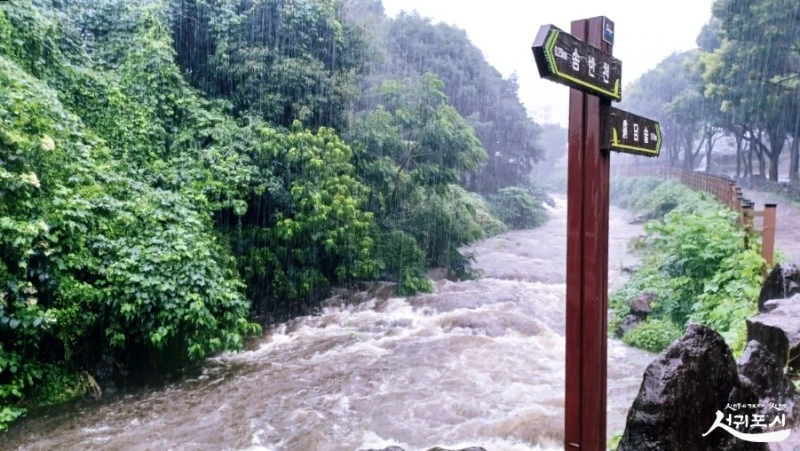 산지물이 정방폭포에 이르는 동안 거치게 되는 동홍천 힐링길은 사실 하천수 지저분해 꺼리던 길인데 오늘은 다르더군요.