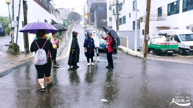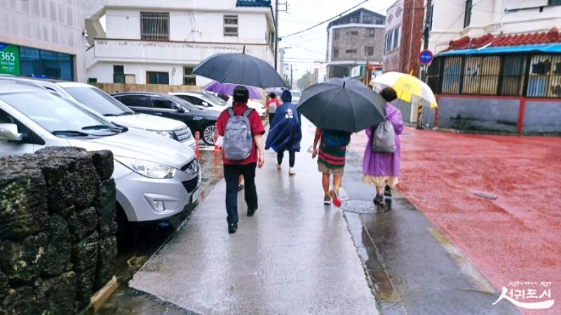 출발은 서귀포 시청 제1청사에서 시작해 솜반천 탐방로~흙담소나무길~변시지 그림정원~지장샘~면형의 집~산지물
