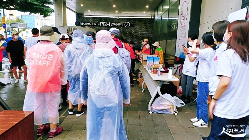 하영 올레길 구간구간마다 안전요원이 배치돼 길 안내를 도왔는데 산지물 소(沼)는 호우경보에 따라 임시 폐쇄됐다는군요.