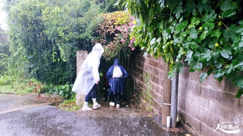 어제에 이어 오늘 아침에도 제주엔 호우경보가 발령돼 외출 자제하라 일렀건만 아랑곳하지 않고서요.