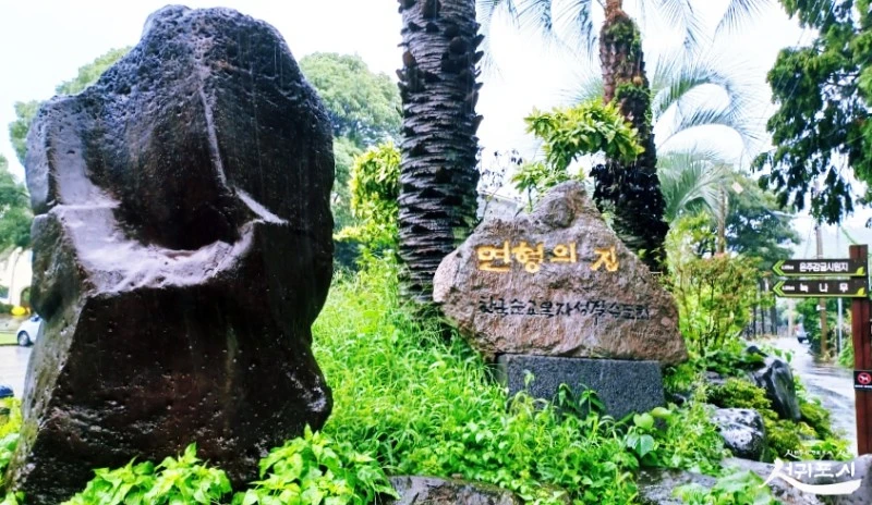 면형의 집 수도원에 들러 제주 최초의 감귤나무인 온주밀감나무 고사목 작품 일별한 뒤 곧장 산지물 물놀이장으로 이동했어요.