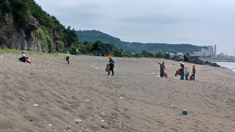 마침 오늘은 시청 서포터즈 팀들과 안덕 황우치해변에서 비치코밍 봉사활동을 한 날.