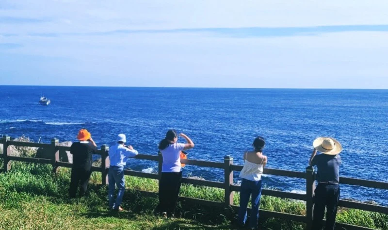 여러 차례 돌고래가 지나는 걸 보았다는 올레길 도반이 스팟을 정확히 기억하더군요.
