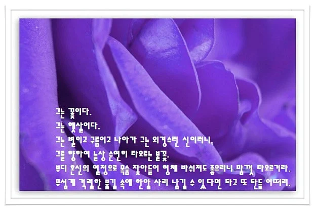 부디 혼신의 열정으로 목숨 잦아들어 형체 바숴져도 좋으리니 맘껏 타오르거라.