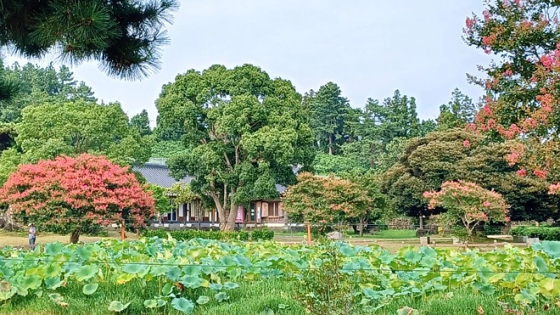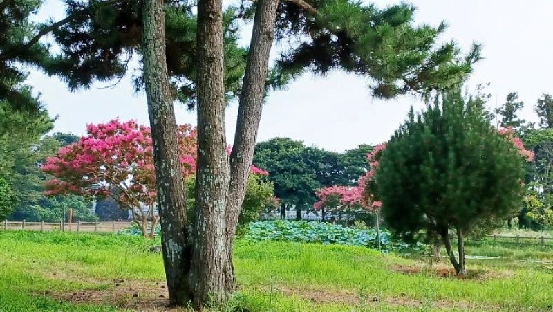 철 한참 지나 지금은 백련화 단 한 송이 우릴 맞아주었지만 배롱나무 꽃 한창인 데다