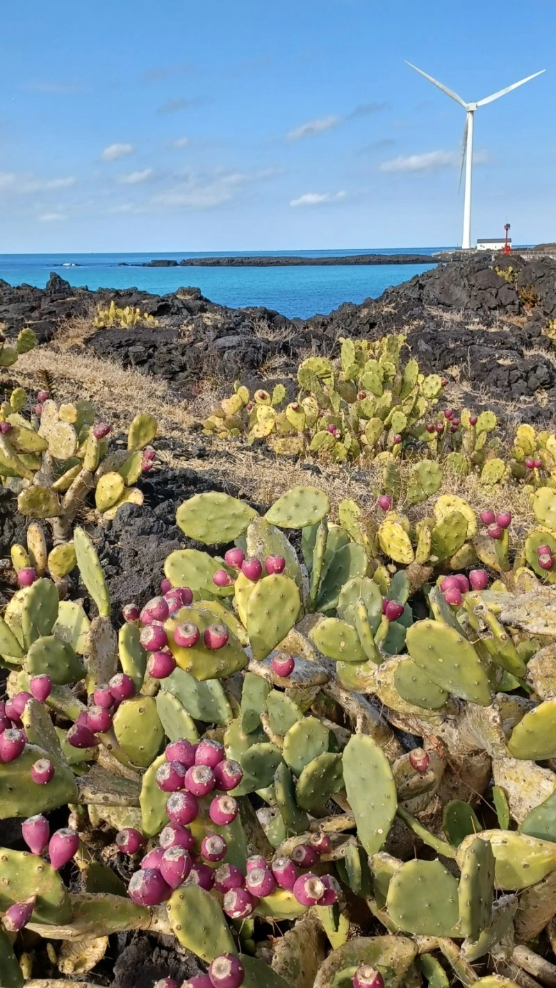 해안가 따라 작은 해수욕장이 자리 잡았으며 저만치 풍력발전 바람개비 돌고 선인장 떼 지어 군락 이룬 마을이다.