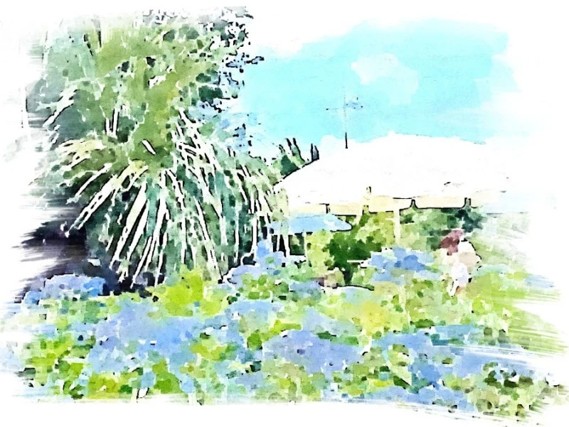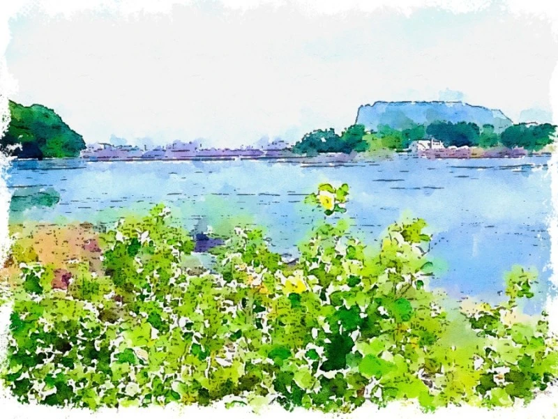 성산 일출봉이 마주 보이는 오조리 황근 군락지에 칠월 깊어지자 노란 무궁화 만개/수국 중에서도 물빛을 닮은 푸른 수국 가득한 카페에서