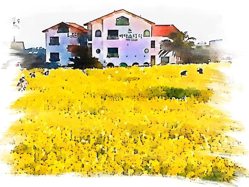 춘삼월 온누리에 만화방창 유채 흐드러지고/ 예래생태마을 물길 따라 벚꽃길 이어지고