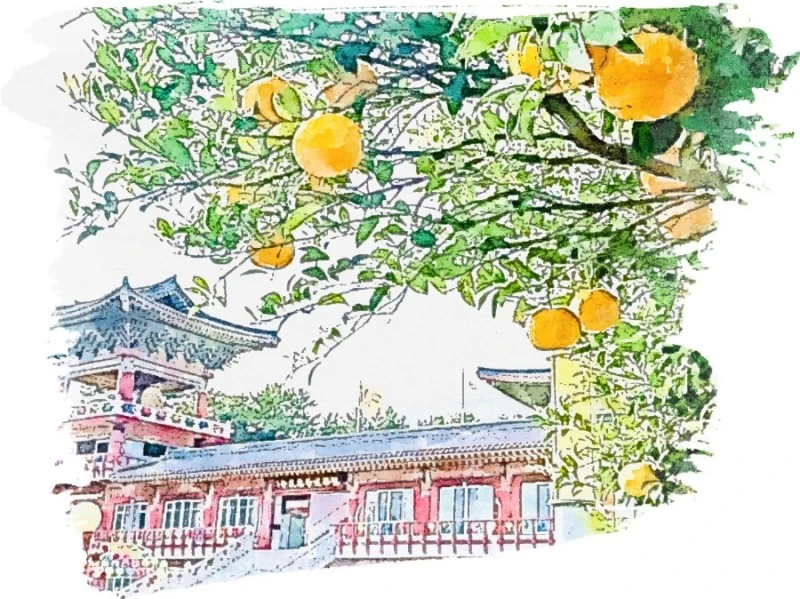 하얀 귤꽃 향그러이 피었는데 하귤은 아직도 나무에 /칠월도 하순, 겨워지도록 싱싱한 하귤 샛노란 약천사