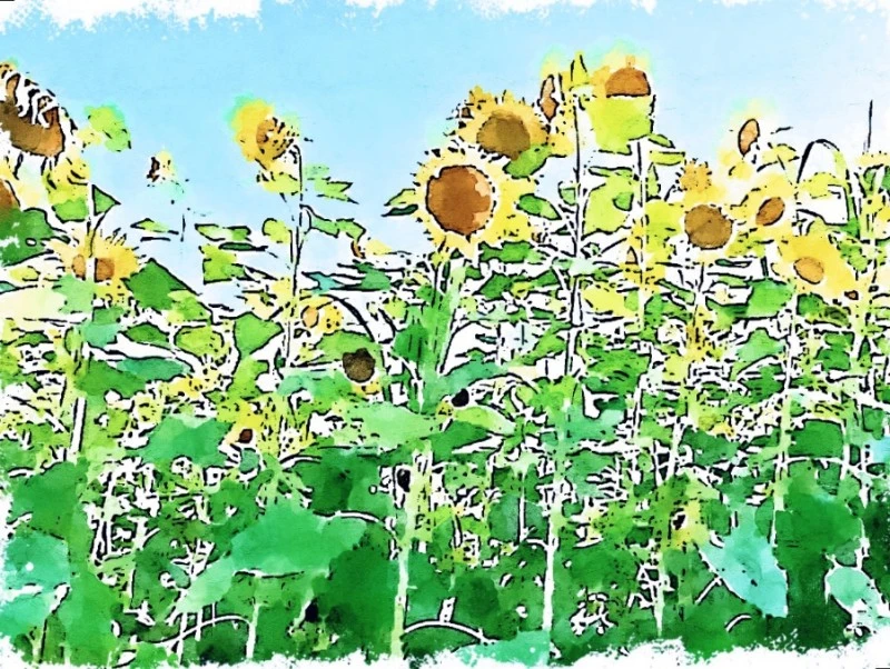 팔월 한가운데 표선 마을 한 리조트 벌판에는 가을 금계국 한가득/서로서로 키재기 하는 해바라기 꽃