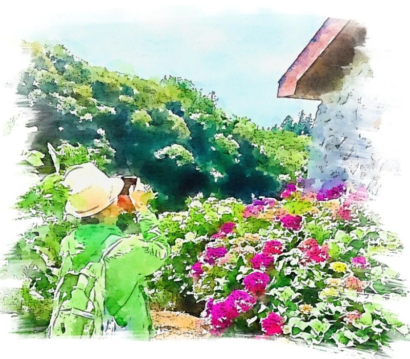 폭우 쏟아진 뒤 엉또폭포 오가는 길에 수국 가득 핀 어느 카페/감귤농장이 있는 엉또산장에도 수국꽃 지천